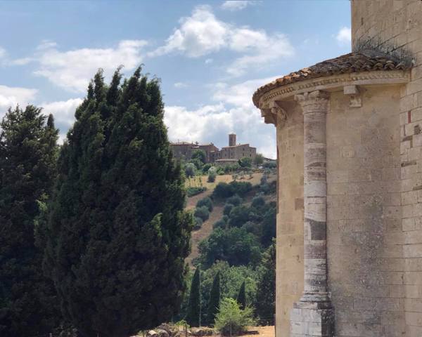Usytuowane na wzgórzu malownicze toskańskie miasteczko. Dookoła otaczają je wzgórza porośnięte lasami i winnicami. Krajobraz jaki się z niego rozpościera zapiera dech w piersiach. Z miasteczka widać też nasz kolejny cel podróży, jest to romańskie opactwo benedyktynów.
